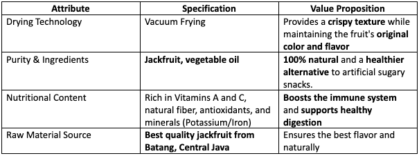 Experience the natural sweet and fragrant aroma of our Jackfruit Chips. We only use the best raw materials because our production is located in Batang, Central Java, which is known for supplying the best quality jackfruit.