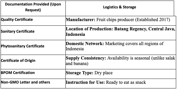 We ensure the superior quality and exotic appeal of this unique Indonesian fruit chip: